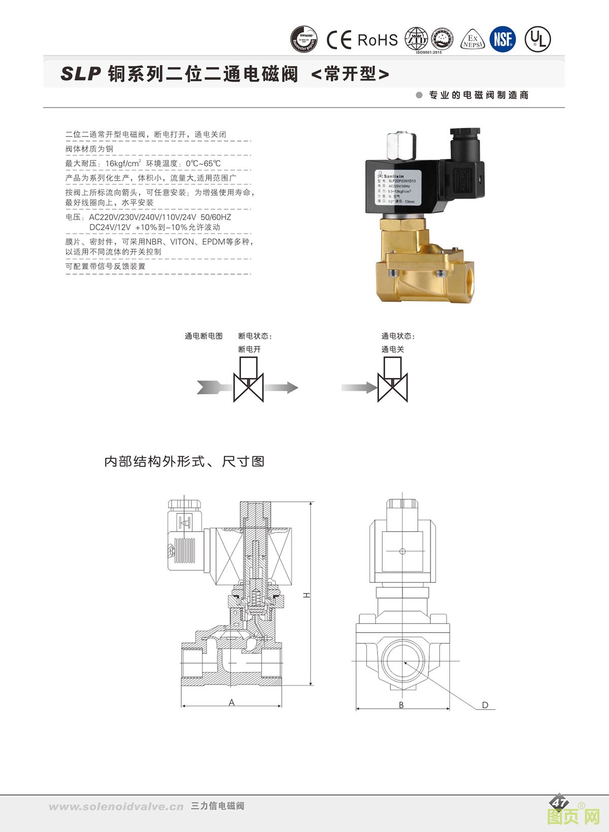 本網頁所展示的有關【三力信_SLP二位二通大口徑先導式膜片電磁閥/常開型_電磁閥】的信息/圖片/參數等由的會員【余姚市三力信電磁閥有限公司 】提供,由圖頁網會員【余姚市三力信電磁閥有限公司 】自行對信息/圖片/參數等的真實性、準確性和合法性負責,本平臺(本網站)僅提供展示服務,請謹慎交易,因交易而產生的法律關系及法律糾紛由您自行協商解決,本平臺(本網站)對此不承擔任何責任。您在本網頁可以瀏覽【三力信_SLP二位二通大口徑先導式膜片電磁閥/常開型_電磁閥】有關的信息/圖片/價格等及提供 【三力信_SLP二位二通大口徑先導式膜片電磁閥/常開型_電磁閥】的商家公司簡介、聯系方式等信息。