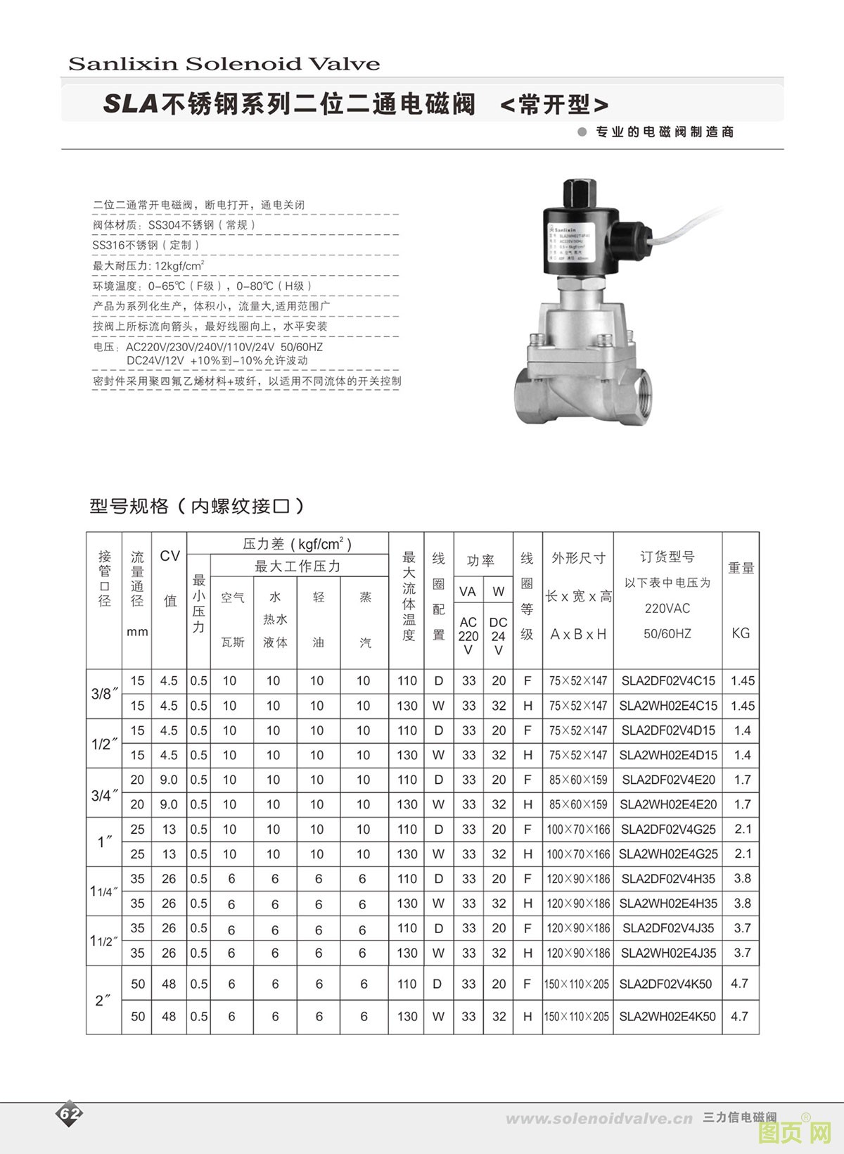 本網頁所展示的有關【三力信_SLA二位二通先導式活塞型電磁閥/常開型_電磁閥】的信息/圖片/參數等由的會員【余姚市三力信電磁閥有限公司 】提供,由圖頁網會員【余姚市三力信電磁閥有限公司 】自行對信息/圖片/參數等的真實性、準確性和合法性負責,本平臺(本網站)僅提供展示服務,請謹慎交易,因交易而產生的法律關系及法律糾紛由您自行協商解決,本平臺(本網站)對此不承擔任何責任。您在本網頁可以瀏覽【三力信_SLA二位二通先導式活塞型電磁閥/常開型_電磁閥】有關的信息/圖片/價格等及提供 【三力信_SLA二位二通先導式活塞型電磁閥/常開型_電磁閥】的商家公司簡介、聯系方式等信息。