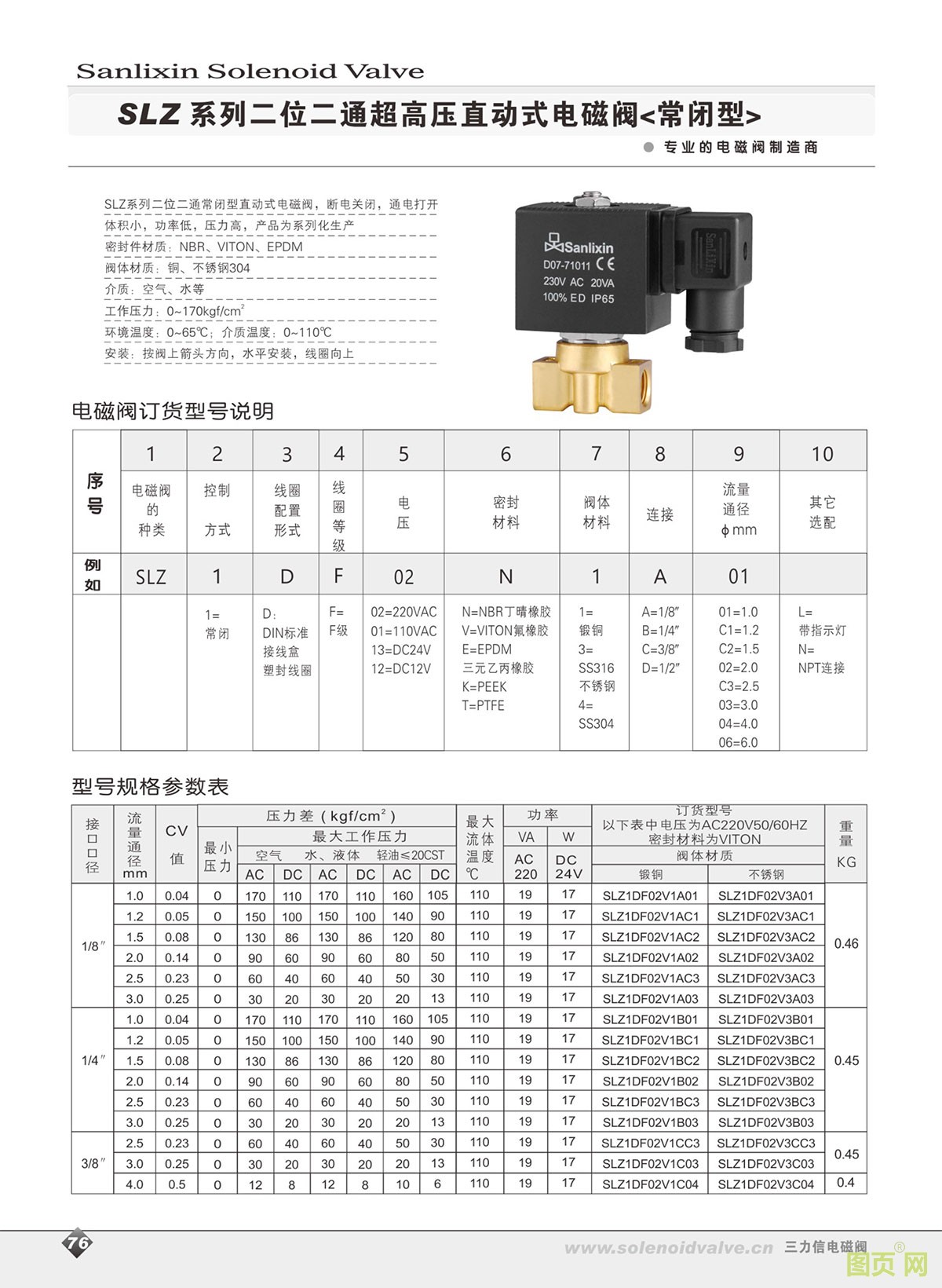 本網頁所展示的有關【三力信_SLZ 系列二位二通高壓直動式電磁閥/常閉型_電磁閥】的信息/圖片/參數等由的會員【余姚市三力信電磁閥有限公司 】提供,由圖頁網會員【余姚市三力信電磁閥有限公司 】自行對信息/圖片/參數等的真實性、準確性和合法性負責,本平臺(本網站)僅提供展示服務,請謹慎交易,因交易而產生的法律關系及法律糾紛由您自行協商解決,本平臺(本網站)對此不承擔任何責任。您在本網頁可以瀏覽【三力信_SLZ 系列二位二通高壓直動式電磁閥/常閉型_電磁閥】有關的信息/圖片/價格等及提供 【三力信_SLZ 系列二位二通高壓直動式電磁閥/常閉型_電磁閥】的商家公司簡介、聯系方式等信息。