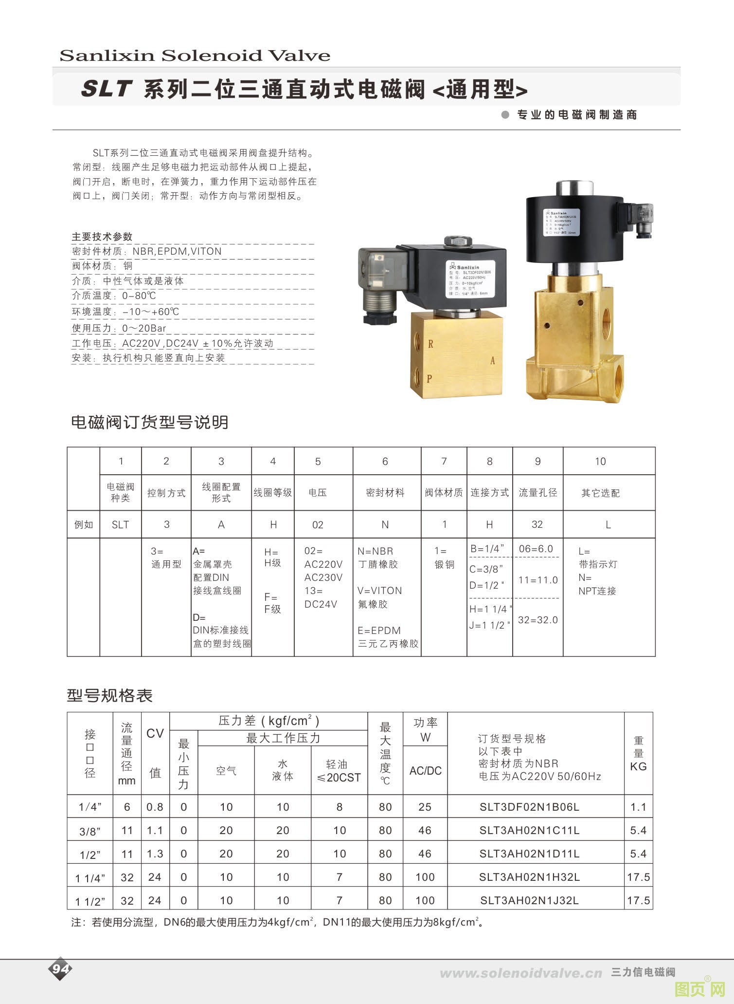 本網頁所展示的有關【三力信_SLT系列二位三通直動式電磁閥<通用型> _電磁閥】的信息/圖片/參數等由的會員【余姚市三力信電磁閥有限公司 】提供,由圖頁網會員【余姚市三力信電磁閥有限公司 】自行對信息/圖片/參數等的真實性、準確性和合法性負責,本平臺(本網站)僅提供展示服務,請謹慎交易,因交易而產生的法律關系及法律糾紛由您自行協商解決,本平臺(本網站)對此不承擔任何責任。您在本網頁可以瀏覽【三力信_SLT系列二位三通直動式電磁閥<通用型> _電磁閥】有關的信息/圖片/價格等及提供 【三力信_SLT系列二位三通直動式電磁閥<通用型> _電磁閥】的商家公司簡介、聯系方式等信息。