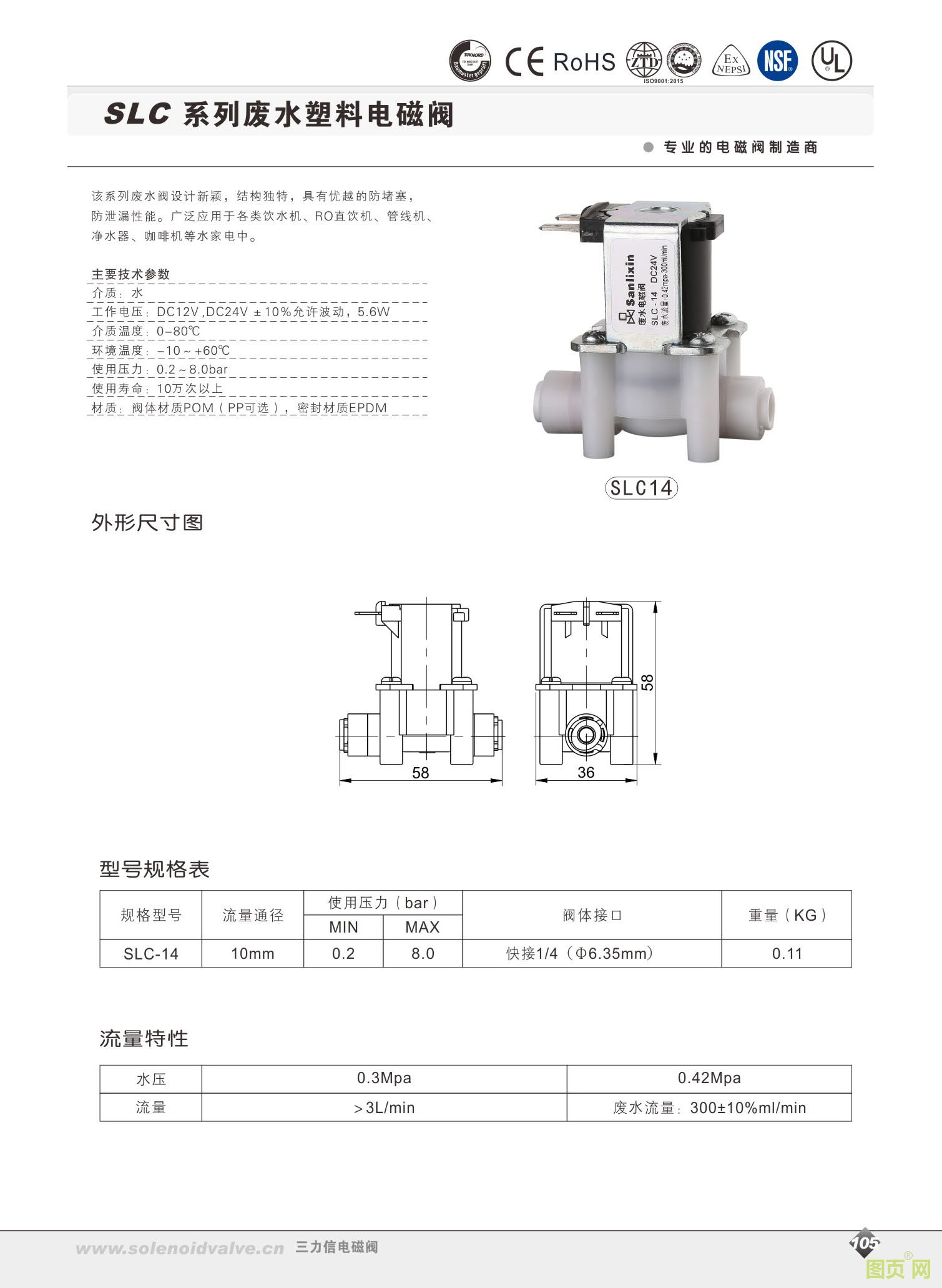本網頁所展示的有關【三力信_SLC系列廢水塑料電磁閥_電磁閥】的信息/圖片/參數等由的會員【余姚市三力信電磁閥有限公司 】提供,由圖頁網會員【余姚市三力信電磁閥有限公司 】自行對信息/圖片/參數等的真實性、準確性和合法性負責,本平臺(本網站)僅提供展示服務,請謹慎交易,因交易而產生的法律關系及法律糾紛由您自行協商解決,本平臺(本網站)對此不承擔任何責任。您在本網頁可以瀏覽【三力信_SLC系列廢水塑料電磁閥_電磁閥】有關的信息/圖片/價格等及提供 【三力信_SLC系列廢水塑料電磁閥_電磁閥】的商家公司簡介、聯系方式等信息。