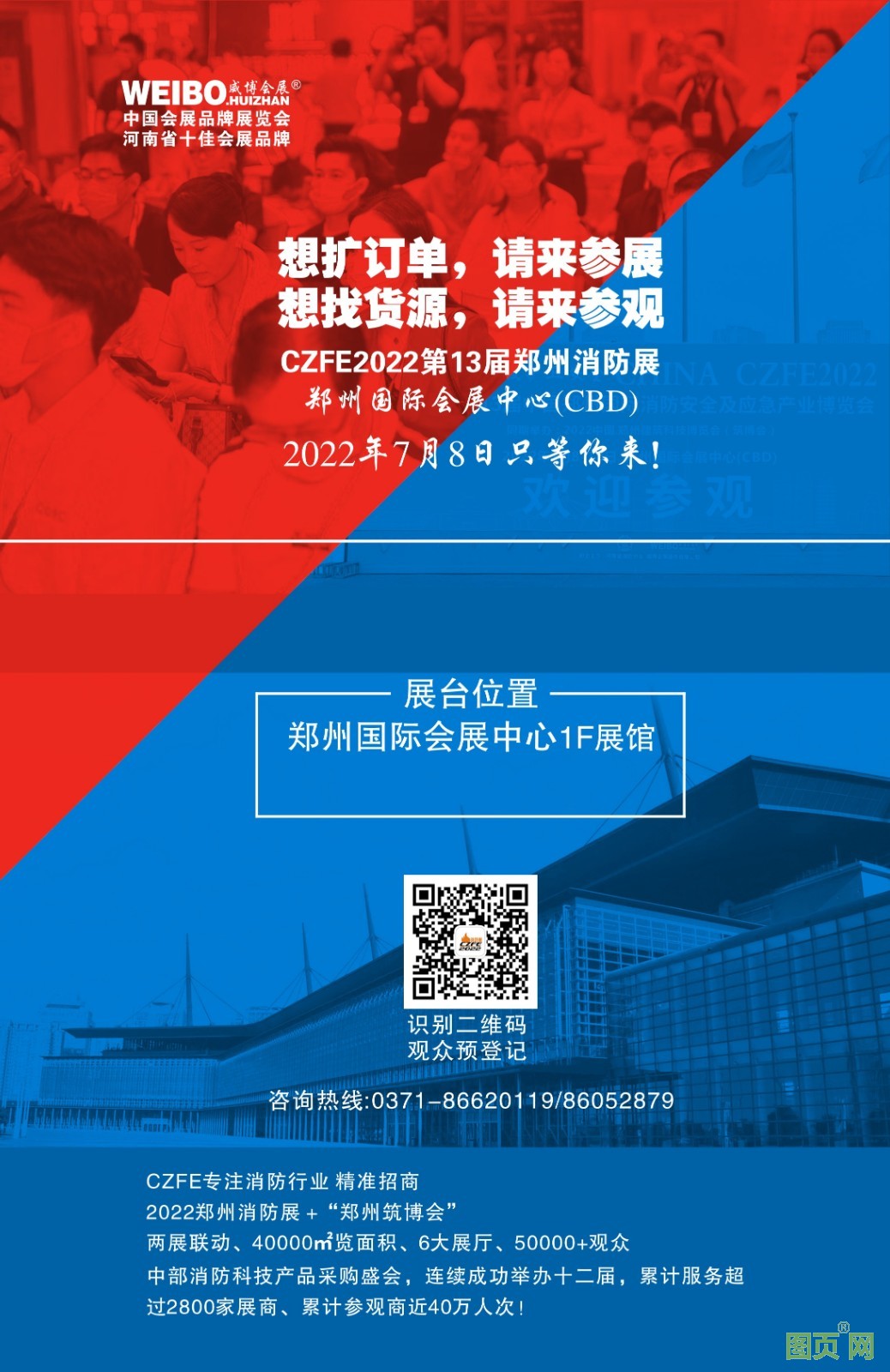 2022年7月8-10日,在鄭州國際會展中心(CBD)由威博會展旗下舉辦的“2022中國.鄭州消防安全與應(yīng)急產(chǎn)業(yè)博覽會& 2022中國.鄭州建筑防火與耐火/阻燃材料展(CZFE鄭州消防展)”將與“2022中國.鄭州裝配式建筑與建筑科技產(chǎn)品博覽會(筑博會)”聯(lián)袂舉辦。