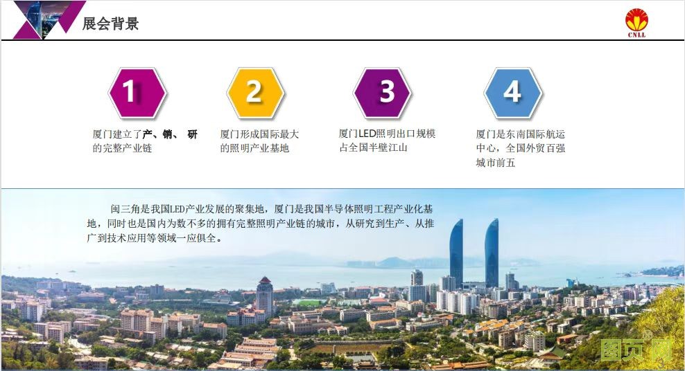 廈門是中國最早實行對外開放政策的四個經濟特區之一,“中國(福建)自由貿易試驗區”三片區之一,也是我國重要的LED產業集中地,在業界,大家把廈門LED產業的特色譽為“廈門模式”,是全國14個國家半導體照明產業化基地的發展樣本之一。