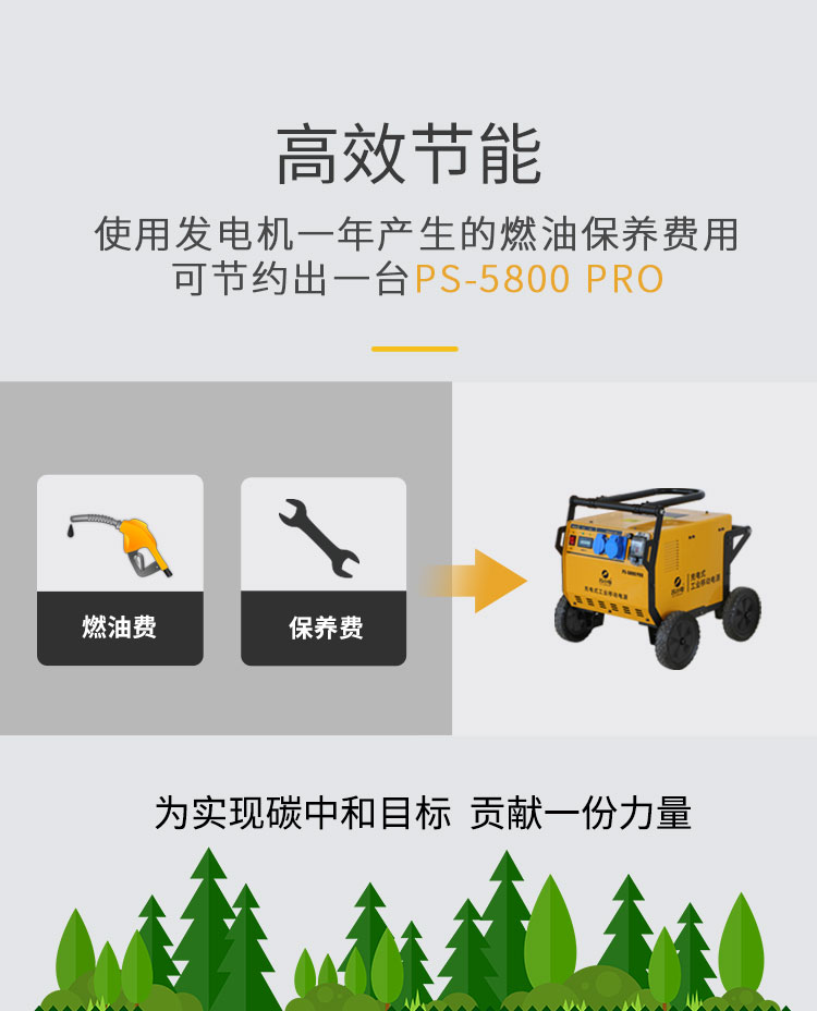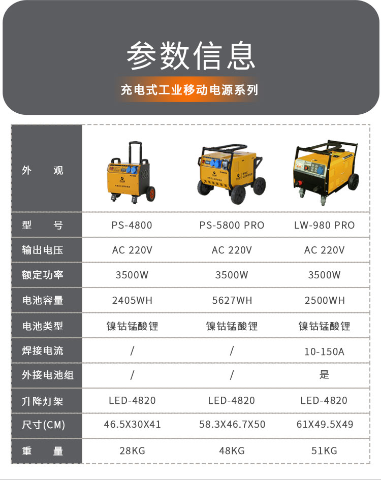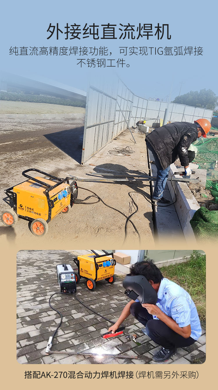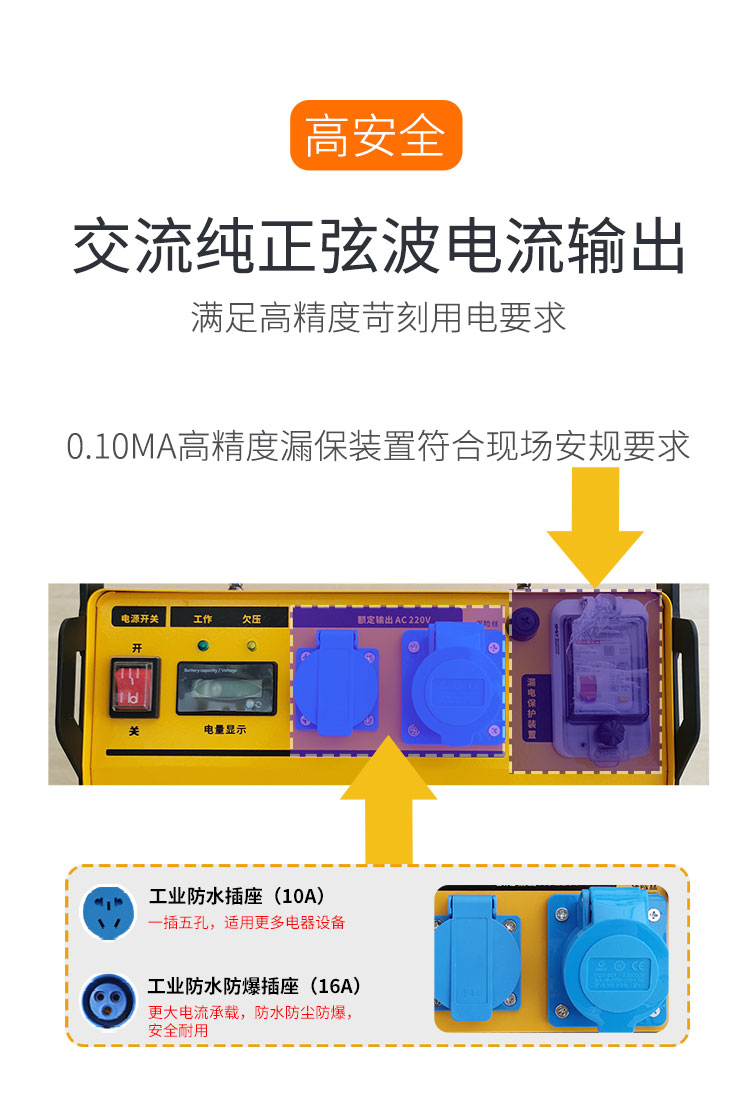 220V/3500W大功率電源,輸出穩定,用于電鎬、切割機、角磨機等電動工具現場供電;