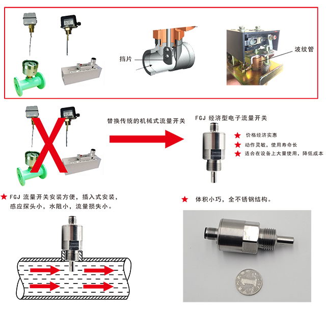 2、替代擋板式流量開關,動作靈敏,使用壽命長