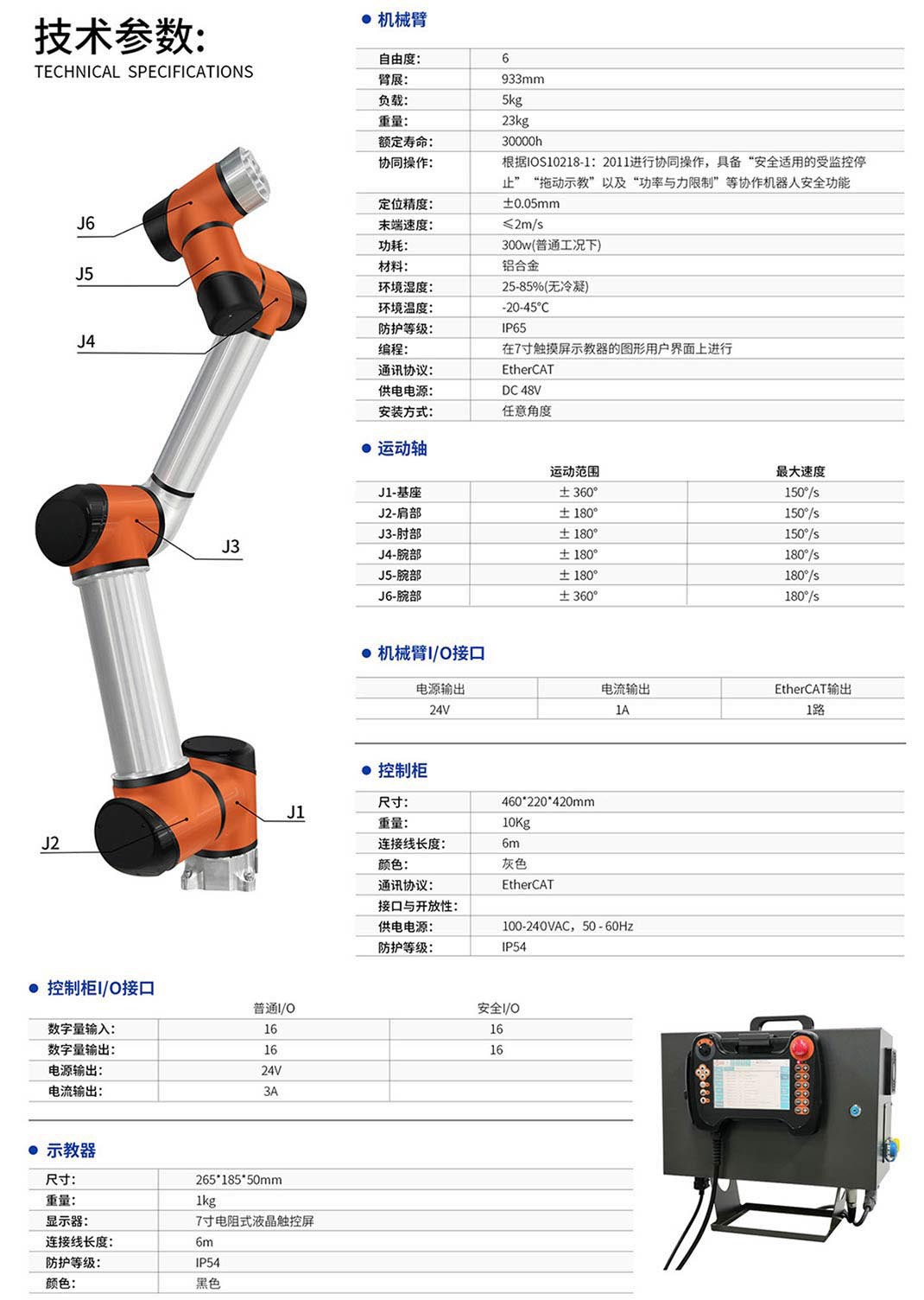 深圳泰科智能TB6-R5協(xié)作機(jī)器人是一款靈活的輕型工業(yè)協(xié)作機(jī)器人,具有精巧的機(jī)械結(jié)構(gòu)設(shè)計。這款協(xié)作機(jī)器人有效負(fù)載為5KG,自重僅為23KG,重復(fù)定位精度可達(dá)±0.05mm,適應(yīng)多樣性、柔性生產(chǎn)應(yīng)用需求。模塊化關(guān)節(jié)設(shè)計,使關(guān)節(jié)模組拆卸及更換更快捷,易于安裝及維護(hù)。擁有輕量化、用途廣泛、易于使用的特點,旨在幫助企業(yè)提高經(jīng)濟(jì)效益。