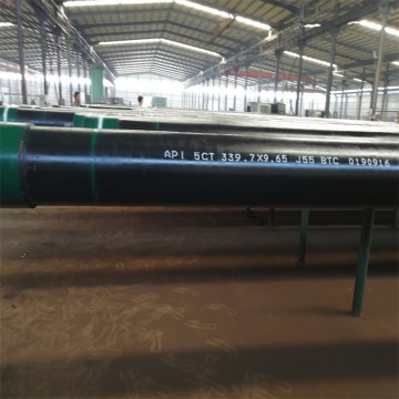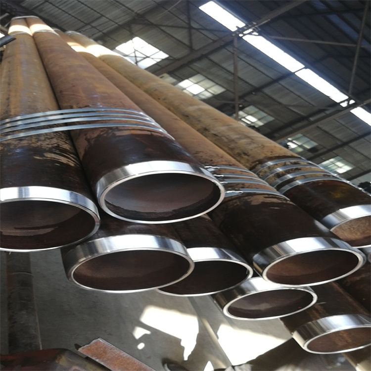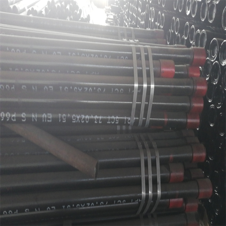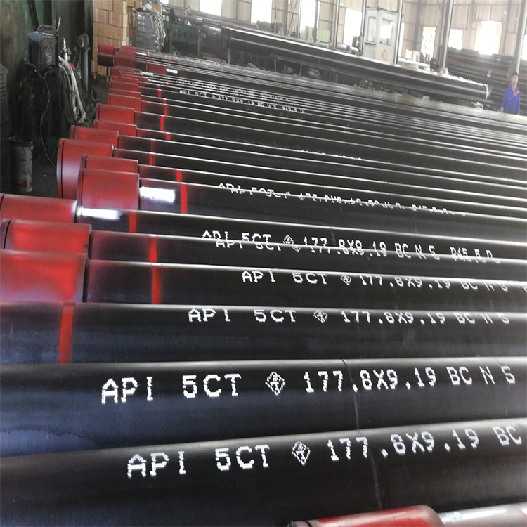 244.5石油套管 193.68石油套管 406石油套管保質量用于石油井鉆探,新盛管道一直致力于石油管線鋼J55的研發和生產,并積尋找合作伙伴。隨著設備的升級改造,該單位具備了生產汽車用鋼、高鋼、深沖鋼等高附加值產品的能力。鋼管先進行鋼級鑒別,合格的鋼管由輥道輸送,依次經過渦流、漏磁,石油套管主要用于石油油井,地熱井,煤氣井,地熱換熱井,煤礦回填,煤礦泥漿回填等,在線探傷儀器對管體的縱、橫向缺進行檢查。合格的鋼管經輸送輥道送到1號車絲工位,在此共有多臺專用數控車床進行鋼管一端的絲扣加工,包括銑端面、倒內外棱、扒皮和車絲。然后經輥道運送到2號車絲工位同1號工位一樣有相同數量的專用數控車絲機進行鋼管另一端的絲扣加工。車絲以后的鋼管由輸送輥道送到螺紋檢查臺架進行絲扣檢查,在此共包括三個工位。在一個檢查工位上,人工檢查絲扣,用單項儀檢查絲扣的螺距、齒高和尾扣。在二個檢查工位上檢查絲扣的錐度。在第三個位上用工作環規檢查緊密距。絲扣不合格的鋼管被收集,返回切除廢絲扣后重新加工和檢查。檢查合格的鋼管運送到接箍擰緊機前,給絲扣上涂上螺紋油脂,并由手工預擰接箍。接著鋼管被送到接箍擰緊機上將接箍擰到規定的程度。擰接時的力矩和圈數須同時符合要求。擰接接箍后鋼管進行全長通徑試驗。通徑后的鋼管進行水壓試驗。