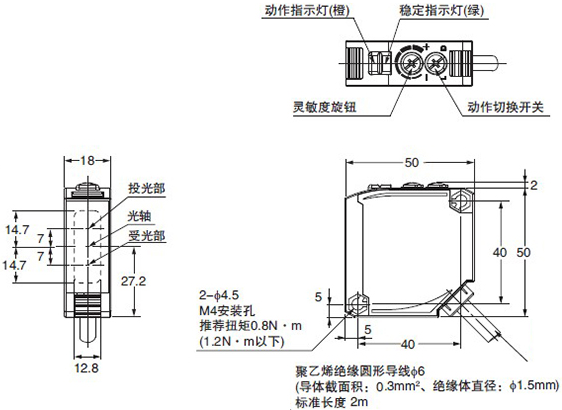 動(dòng)作指示 | 動(dòng)作顯示燈(紅色)/穩(wěn)定指示燈(綠色) | |