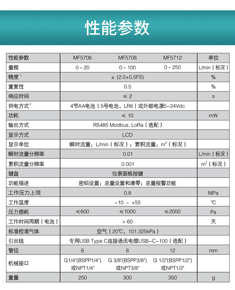 MF5706微型氣體質量流量計技術參數: