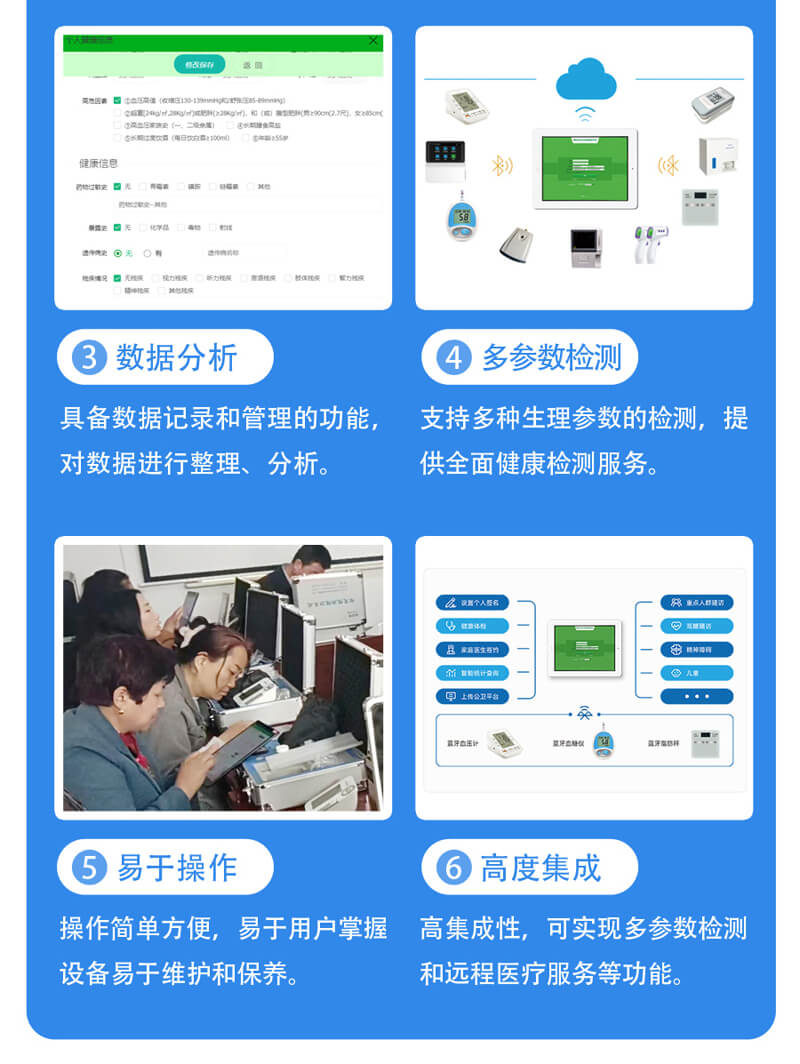 上正華瑞手提式隨訪包在基層醫務人員開展慢病隨訪的工作中能夠發揮多方面的作用,包括提高隨訪工作的靈活性和效率、輔助醫務人員進行健康數據的檢測和收集、建立和管理電子健康檔案以及提升患者滿意度和依從性等。