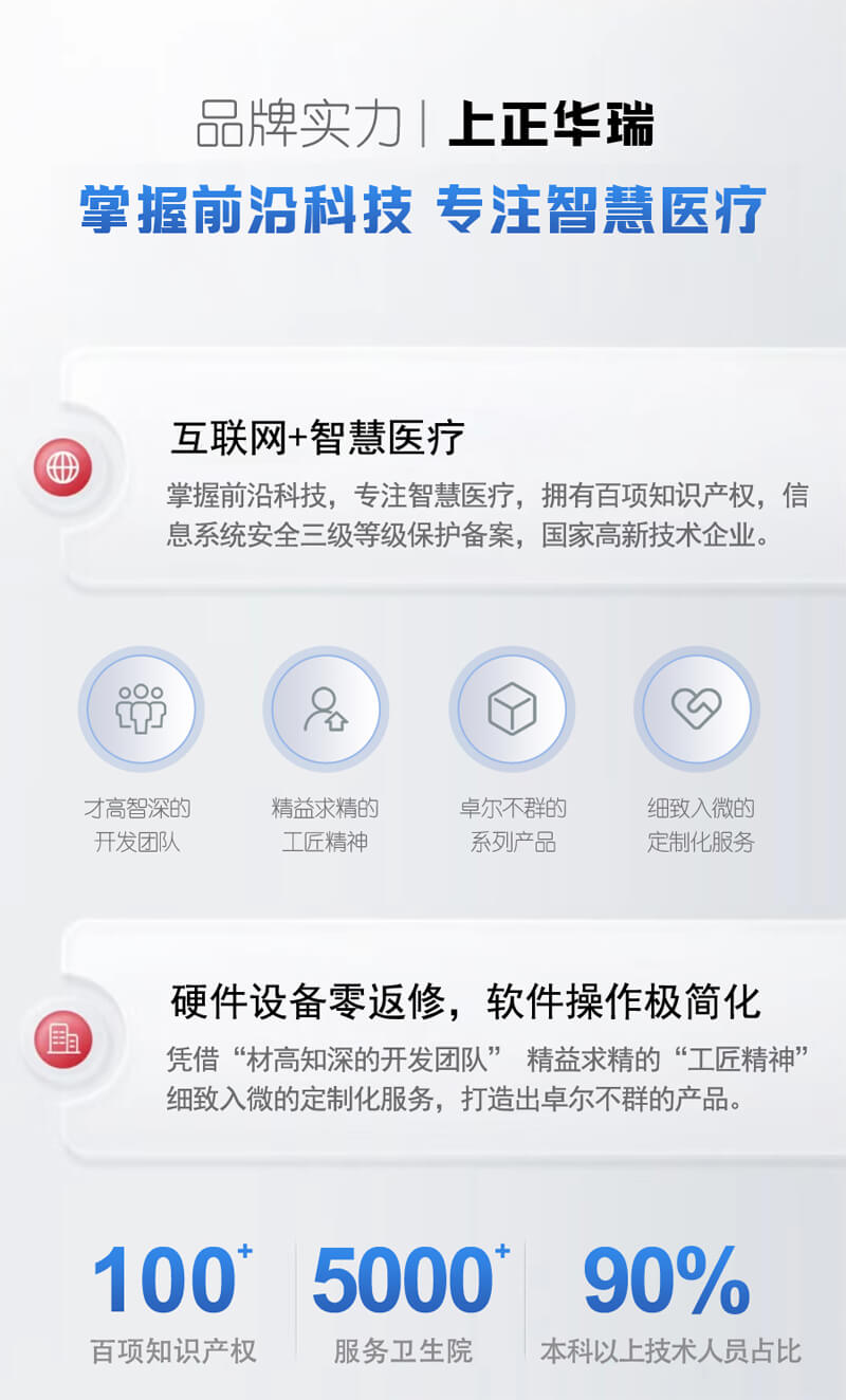 請撥打熱線或搜索品牌詞“上正華瑞”聯系我們,我們承諾為您提供價格更優、質量更好的家醫隨訪包軟硬件產品。專業軟硬件運維團隊全天待命,有產品的地方便有我們兢兢業業的產品服務人員,為您量身解決需求難題,還有免費UI設計師、PPT制作人員為您拓展更完善的需求服務。買隨訪包請認準“上正華瑞”,已服務于全國5000多家衛生院,用實力說話。