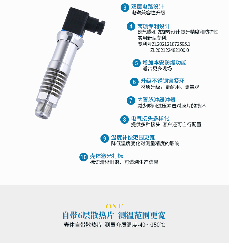 它還具有輸出信號、量程范圍、壓力接口、電氣連接等多元化的優勢,方便匹配不同工況現場。
