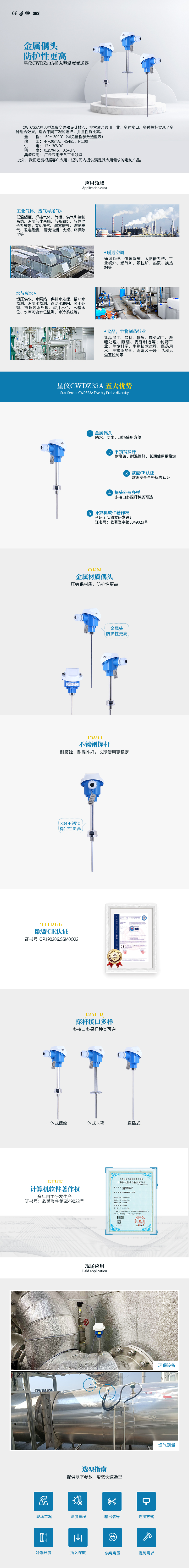 本網頁所展示的有關【星儀CWDZ33A插入型溫度變送器】的信息/圖片/參數等由的會員【星儀傳感器制造有限公司
