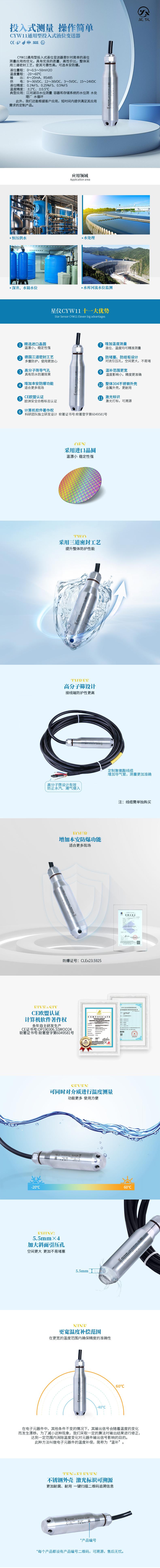 星儀CYW11 液位變送器 投入式水位計4-20ma 液位計RS485 星儀液位傳感器詳細介紹