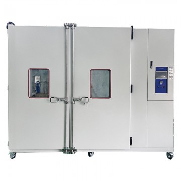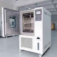 整體分為,試驗室、電控柜、機倉三個組合而成:左側上方為試驗室,由保溫層試驗室內膽組成,向左單開門型式出入;電控柜位于右側,面板主要由溫度控制儀、開關按扭、故障保護指示燈組合而成;機倉置于試驗室下方,由過濾器、電磁閥、線路部分、壓縮機等配件組成。