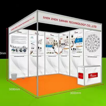 (3m×3m 楣板×1,問詢桌×1,折椅×2, 射燈×2,5A 插座×1,地毯×1。)
