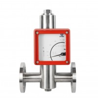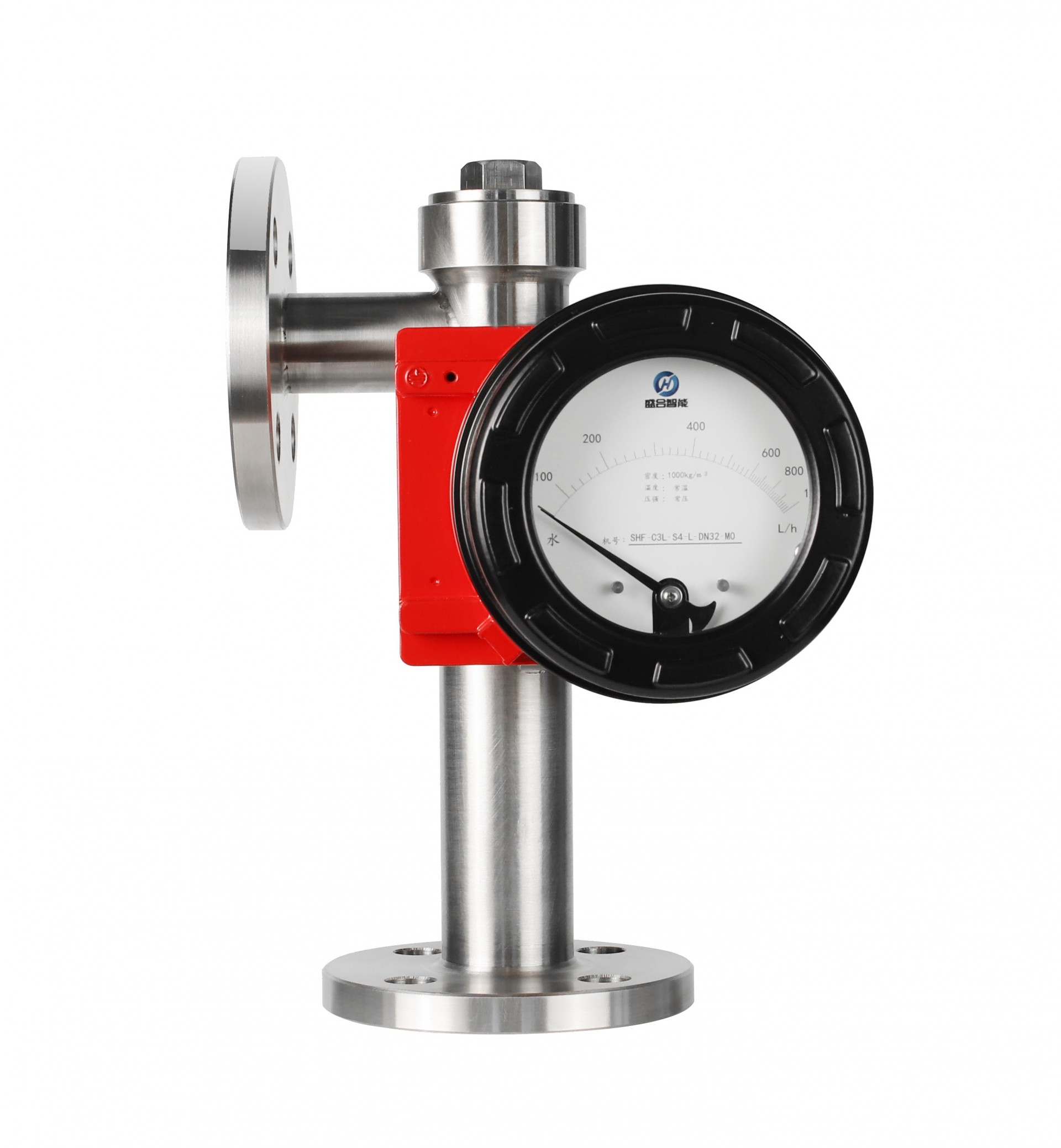 就地型液體氣體通用指針式金屬管浮子流量計,浮子垂直安裝在錐形測量管內,由于流 體的作用,它可以在錐形管中上下自由移動,浮子的外緣直徑與錐形管形成的環形面積隨著浮子位置 的變化而變化,當流體的流量穩定在某一數值時,浮 子也在某一個位置處于一種動平衡狀態,它與錐形管 之間的環形面積也保持恒定,此時,浮子受到三個力 的作用:浮子向下的重量,向上的浮力和流體的動 力,這三個力達到平衡。根據流體動力學的柏努力方 程,力平衡方程和流體的連續性定理,可以計算出流 體通過環形面積的平均瞬時流量。